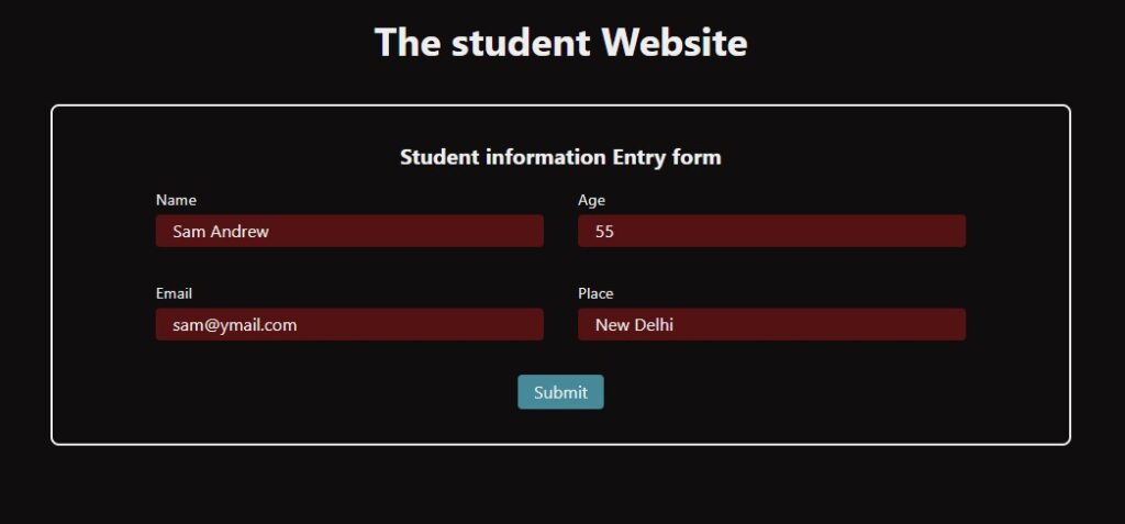 We need a front-end where we can enter the data, and it will get saved in the database. Let’s create a simple form that will accept the name, age, and email of the student.