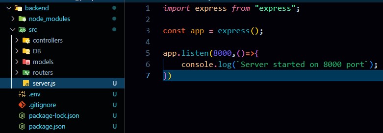 • Express Backend initial setup and files/folder structure